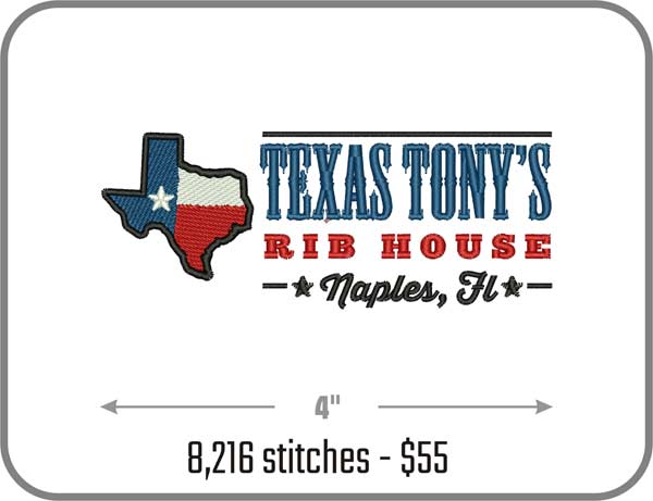 ColorBox Pricing Our prices are based on complexity and time using $4-7/1,000 stitches as a guideline. Below are some examples of our pricing. Click on any image below to see a larger size.